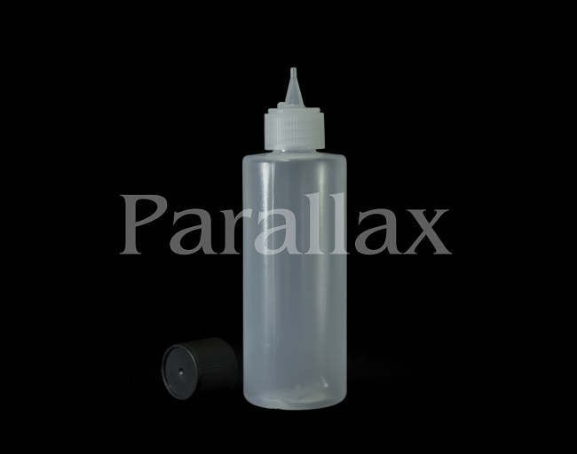 Prázdna plastová fľaštička s hrotom, z ktorej môžete farbu aplikovať priamo.
